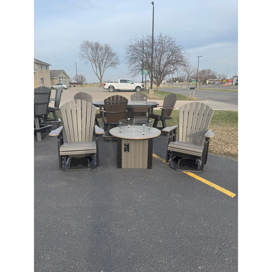 34" Round Fire Pit with 4 Classic Swivel Gliders in White & Driftwood Gray