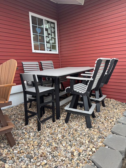 6' Bar Table with 4 Rollback Swivel Chairs and 2 barstool in Black and Dove Gray