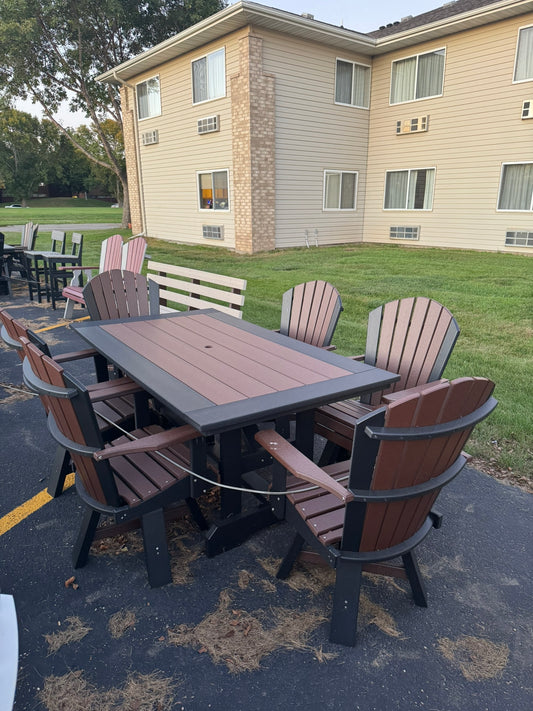 6' Dining Table with 6 Classic Swivel Dining Chairs in Black and Brown