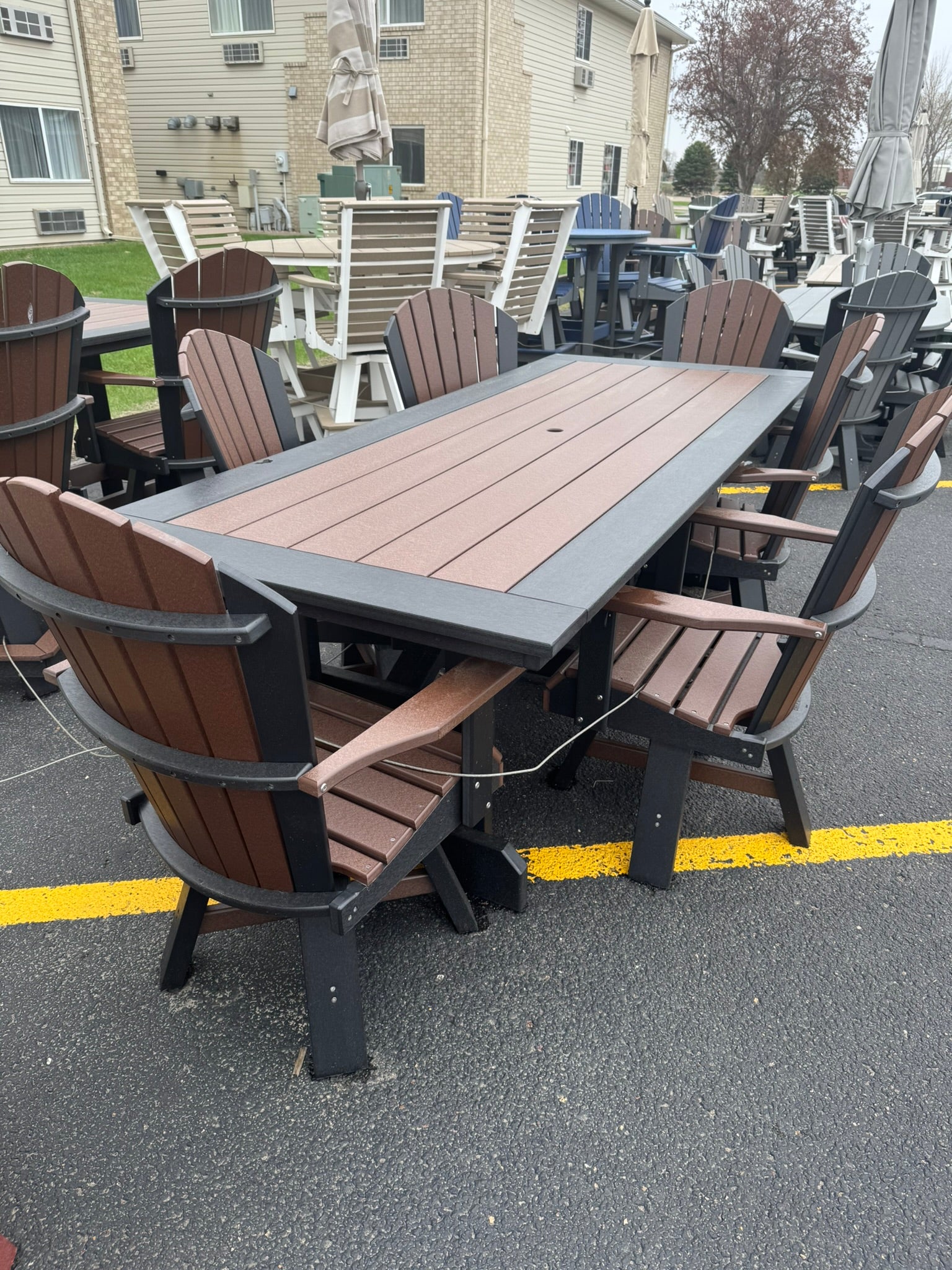 8' Dining Table with 6 Classic Swivel Dining Chairs in Black and Brown